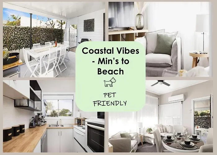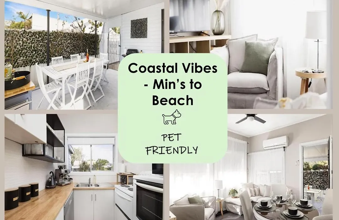 La villa Coastal Vibes Minutes To Beach - Pet Friendly viene equipada con comodidades de autoservicio, incluyendo una cocina bien equipada, una zona de comedor y un comedor al aire libre para que los huéspedes disfruten. La cocina también dispone de un hervidor eléctrico, un lavaplatos y un horno. Los huéspedes pueden alcanzar el lugar en coche desde el aeropuerto Newcastle en 37 minutos.